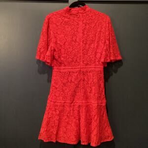 Strut & Bolt floral Lace Lined Mock Neck Short Sleeve flare Mini Dress Red Large