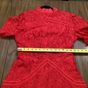 Strut & Bolt floral Lace Lined Mock Neck Puff Sleeve flare Mini Dress Red Large