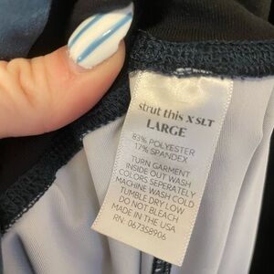 Silky navy leggings from strut this with stylish white star accents. Perfect for any activity.