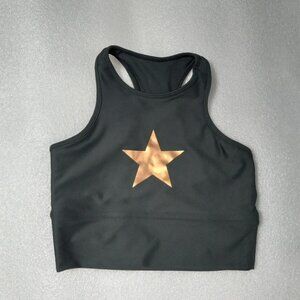 Strut This Stretch Crew Neck Sleeveless Racerback Star Sports Bra Black Small
