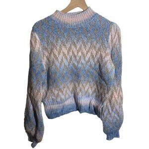 Strut and Bolt Chevron Metallic Sweater Size Large Mock Neck Puff Sleeve Women's