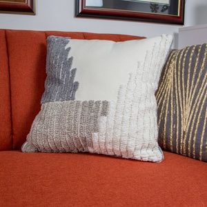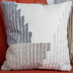 Toss on the texture! Our Struttura Abstract Pillow Cover showcases a unique tufted abstract design in gray, light gray and white.