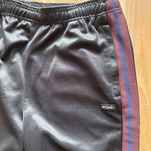Stüssy Link Poly Track Pants Black Burgundy Stripe Size SMALL Style #116332 Y2K