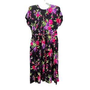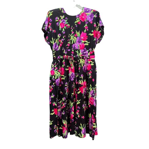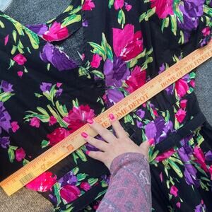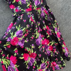 Stuart Alan Vintage Dress Womens 18 Black Floral Back Cutout Fit & Flare Boho