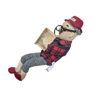 Stuart Inc Retired Man Doll Reading Newspaper In Plaid