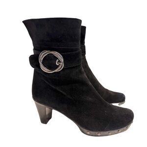 Stuart WEITZMAN Black Suede Heeled Buckle Ankle Bootie