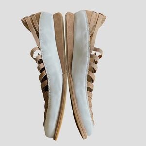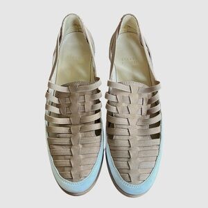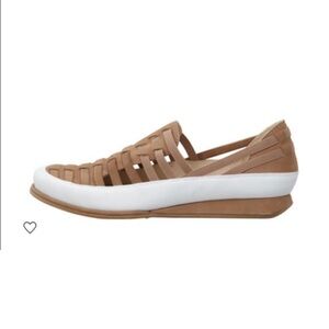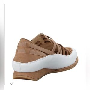 Step out in style with these chic tan and white slip-on shoes. Perfect for any casual outing, these shoes offer both comfort and elegance.