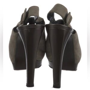 Stuart Weitzman -Elevate your style with these chic gray peep-toe slingback heels. Perfect for any occasion, these shoes offer both comfort and elegance. Like NEW condition minor creasing
