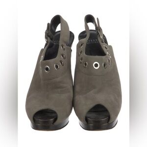 Stuart Weintzman Stylish Gray Peep-Toe Slingback Heels
