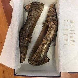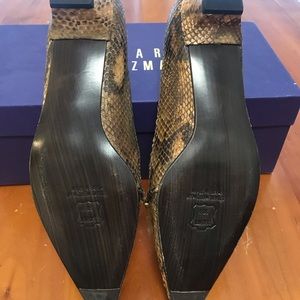 Stuart Weitzman Gemol I Fudge Gypsy Python. Beautiful textured scale python heels Leather sole, made in Spain. Color is Fudge Size 9 N