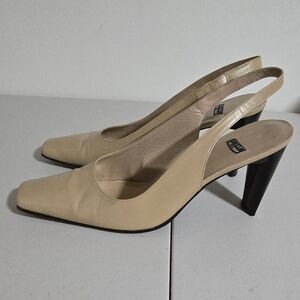 Stuart Weitzma Vintage Sling Back Square Toe Office Career Leather Heel Size 8.5