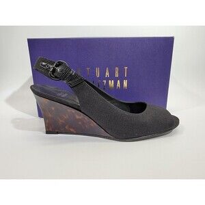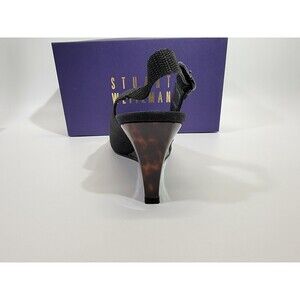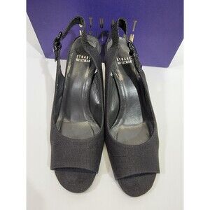 Stuart Weitzman 10 Beltitout Black Linen Slingback High Heels Pumps Designer EUC