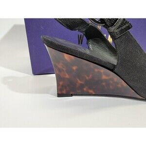 Wedge is tortoise pattern3" heelLeather soleBlack linen upperElastic ankle strapExcellent condition. Only worn a handful of times. Very clean! Please see photos for details; what you see is exactly what you'll receive.