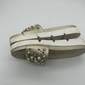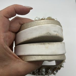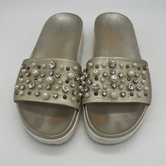 Adorable studded slides, no missing or damaged beads/stones. Foot bead and soles show signs of use, very high quality