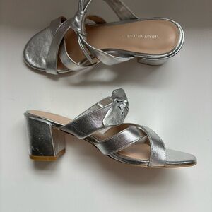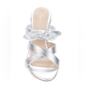 Stuart Weitzman $425 Bandeau Metallic Slide Bow Sandal Silver Leather Sz 6