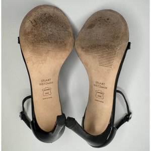 Love the Nude collection of sandals from Stuart Weitzman. These black patent leather Nudistsong Strap Sandals are a classic. This is "The One Shoe Everyone Wears on the Red Carpet", according to an InStyle article of the same name. I purchased these a few years ago and wore them once. I have very wide feet and these are a Medium width. You will see some differences on the sole from the current version but these are authentic and are in excellent, almost new, pre-owned condition (more details below). I broke these in for you :-) Retailed for $475.