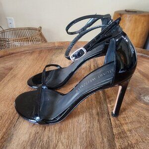 Stuart Weitzman $475 Nudistsong Strap Sandal 100mm Black Patent Leather Size 7