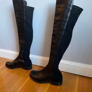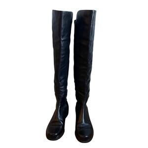 Stuart Weitzman 5050 Black Leather Elastic Back Round Toe Tall Boots EU35.5 US5