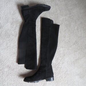 Stuart Weitzman 5050 Boots Size 7.5B Black Suede Iconic Over The Knee Stretch