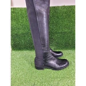 Stuart Weitzman 5050 Over The Knee Boots Black Leather Stretch Size 7 Spain