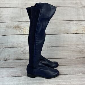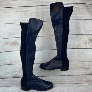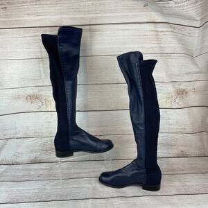 Stuart Weitzman 5050 Womens Sz 6.5 AA Stretch Boots Over The Knee Navy Blue Leat