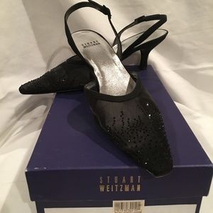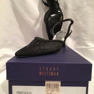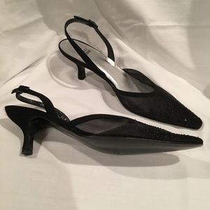 Evening Black Beaded Peau Du Soie Kitten Heel Sling Back Pumps "Precious"