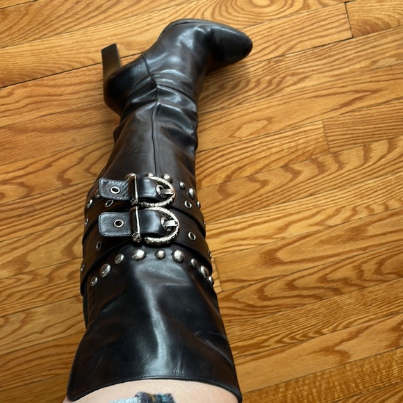 Over the knee black leather boots 4” heel
