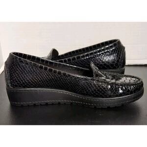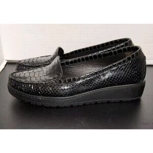 Stuart Weitzman 6M Black Patent Leather Snake Loafer Shock Absorbing Lux Latex