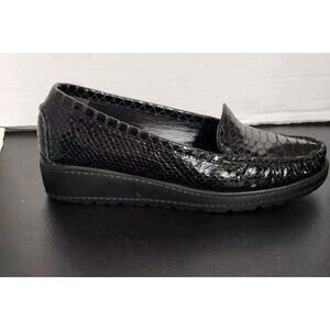 Stuart Weitzman 6M Black Patent Leather Snake Loafer Shock Absorbing Lux Latex. See measurements. I believe this is a size 6 based on other shoes from this closet. Great used condition see photos. Smoke-free home. Check out my other items. I will combine shipping