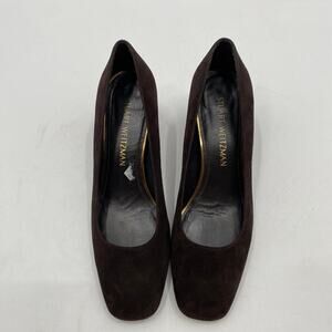 Stuart Weitzman 7 brown square toe block heels