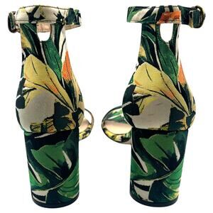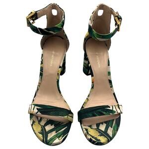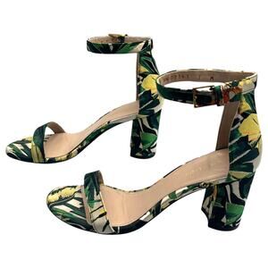 Stuart Weitzman 75 Less Nudist Green Botanical Ankle Strap Block Heel Sandals 7M