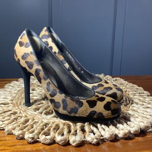 Stuart Weitzman 7M Leopard Calf Hair Stiletto Animal tan black Platform