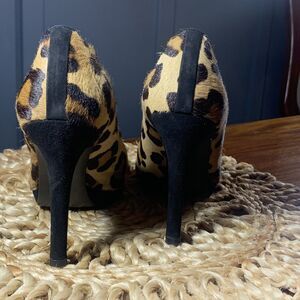 Stuart Weitzman 7M Leopard Calf Hair Stiletto Animal tan black Platform