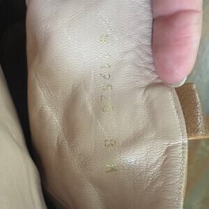 The leather on these boots are beautiful with no scuffing. The sole is in excellent condition with minimal wear. THERE ARE MISSING EMBELLISHMENTS on the toe and one gold jewel has been glued on leaving a darker ring around it. The back zippers are in working order and the insoles are very clean.