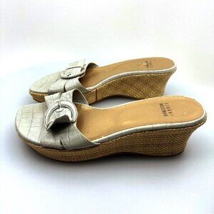Stuart Weitzman 8.5 M Wedge Sandals Raffia Croc Embossed Leather Shoes Heels
