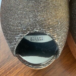 Stuart Weitzman 8M Anna Corkswoon Silver Glitter Metallic Cork Wedge Peep Toe