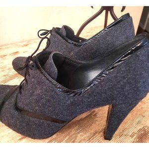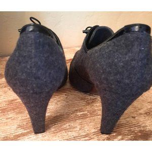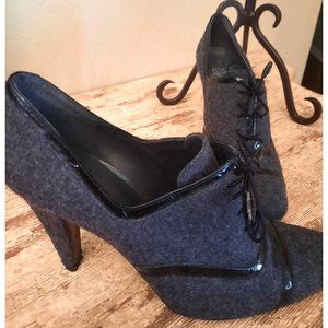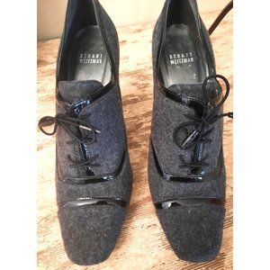By Stuart Weitzman and perfect for fall & winter! Gray "flannel" with black patent trim. Shootie Shoe Bootie.