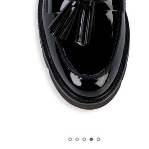 Brand new, never worn, Stuart Weitzman Adrina patent leather tassel loafers. Original box and shoe bag.