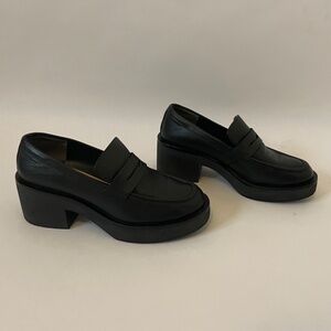 Stuart Weitzman Aiden Rise Platform Lug Sole Black Leather Loafers Women's 6