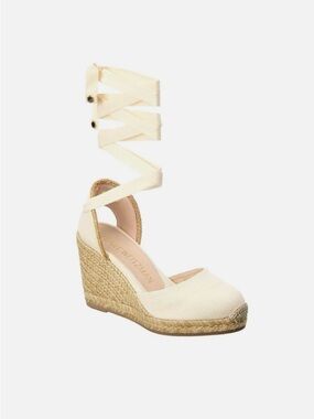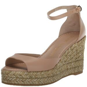 Stuart Weitzman Aleena gold, square toe wedge sandals