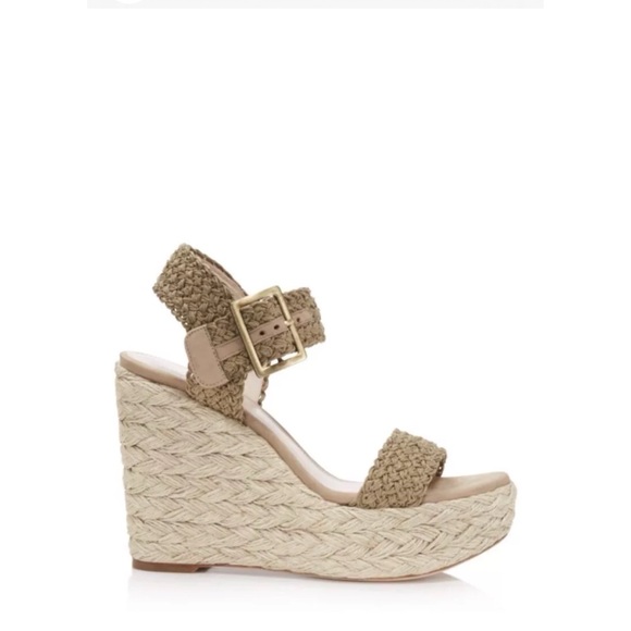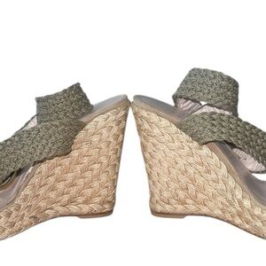 Stuart Weitzman Alexis Swamp Crochet Muted Green Khaki Wedge Sandals Size 9