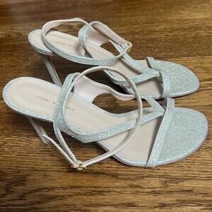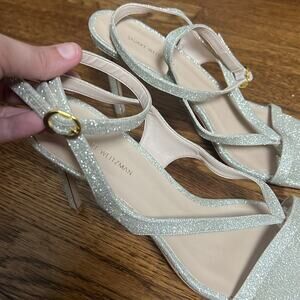Stuart Weitzman Align 95 Glitter Ankle Strap Heeled Sandals Size 10
