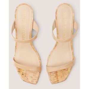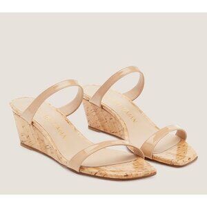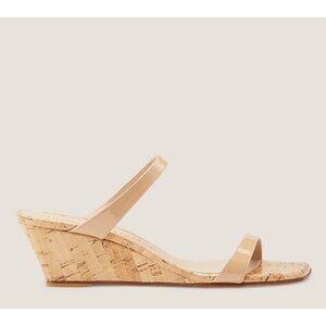 Stuart Weitzman Align II Patent Leather Strappy Wedge Sandal in Beige Size 8.5