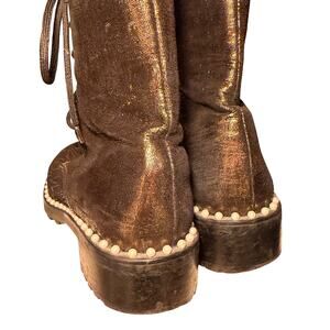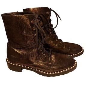 Stuart Weitzman Allie Pearl Combat Boots Metallic Suede Lug Sole 8.5B EU 39