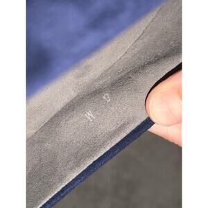 Stuart Weitzman Almond Suede Block Heel Pump with Silver Trim Navy Blue Size 8