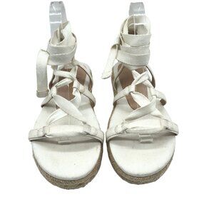 Stuart Weitzman Altdup Canvas Espadrille Wrap Sandals Cream Straps Size 7B