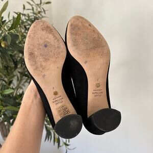 Stuart Weitzman Amata 60 Leather Suede Almond Toe Pumps Black 7