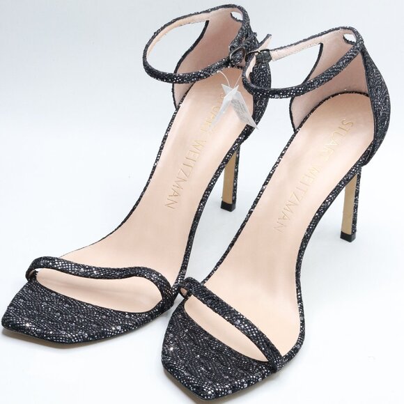 Stuart Weitzman Amelina 95 Ankle Strap Rhinestone Heels Gunmetal 10.5M Women