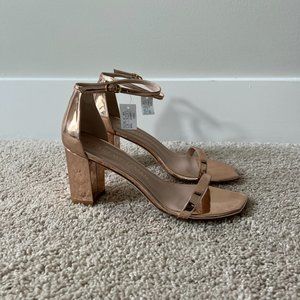 Stuart Weitzman Amelina Block-Heel Sandals Rose Gold NWT