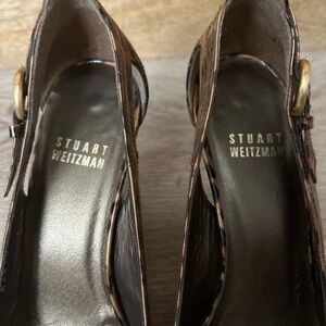 Stuart Weitzman Animal Print Peep Toe Heels with Buckles and Cut Outs